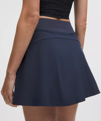 Designed for Tennis Lightweight, Swift Fabric - Lightweight - Four-way stretch - Sweat-wicking - Quick-drying - Built-in Luxtreme™ fabric liner is sweat-wicking and four-way stretch with a cool, smooth feel - Added Lycra® fibre for stretch and shape retention Fit Information - High rise - Skirt length is measured at the centre front, from the top of the waistband to the hem - Skirt length by size: 0–2: 13", 4–6: 13.5", 8–10: 14", 12–14: 14.5" - Liner length for all sizes: 3.5” Product Features - Built-in liner offers extra coverage - Drop-in pockets on the liner - Continuous drawcord - Silicone grippers on the hem prevent ride-up Material and care Materials Back Lining: 69% Nylon31% Lycra Elastane - Front Lining: 87% Nylon13% Lycra Elastane - Waistband: 84% Recycled Polyester16% Elastane - Body: 86% Recycled Polyester14% Elastane Care Machine Wash Cold - Do Not Bleach - Tumble Dry Low - Do Not Iron - Do Not Dry Clean - Wash With Like Colors