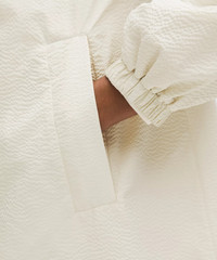 Designed for Casual Lightly Textured Fabric - Lightly textured - Water-resistant - Windproof Oversized Fit, Thigh Length - Oversized fit is purposefully large with exaggerated proportions. Size down if you prefer a slimmer fit Product Features - Zippered hand pockets with hidden phone sleeve - Back vent strategically placed to provide airflow Material and care Materials Lining: 100% Recycled Polyester - Body: 100% Nylon - Mesh: 90% Recycled Polyester10% Lycra Elastane Care