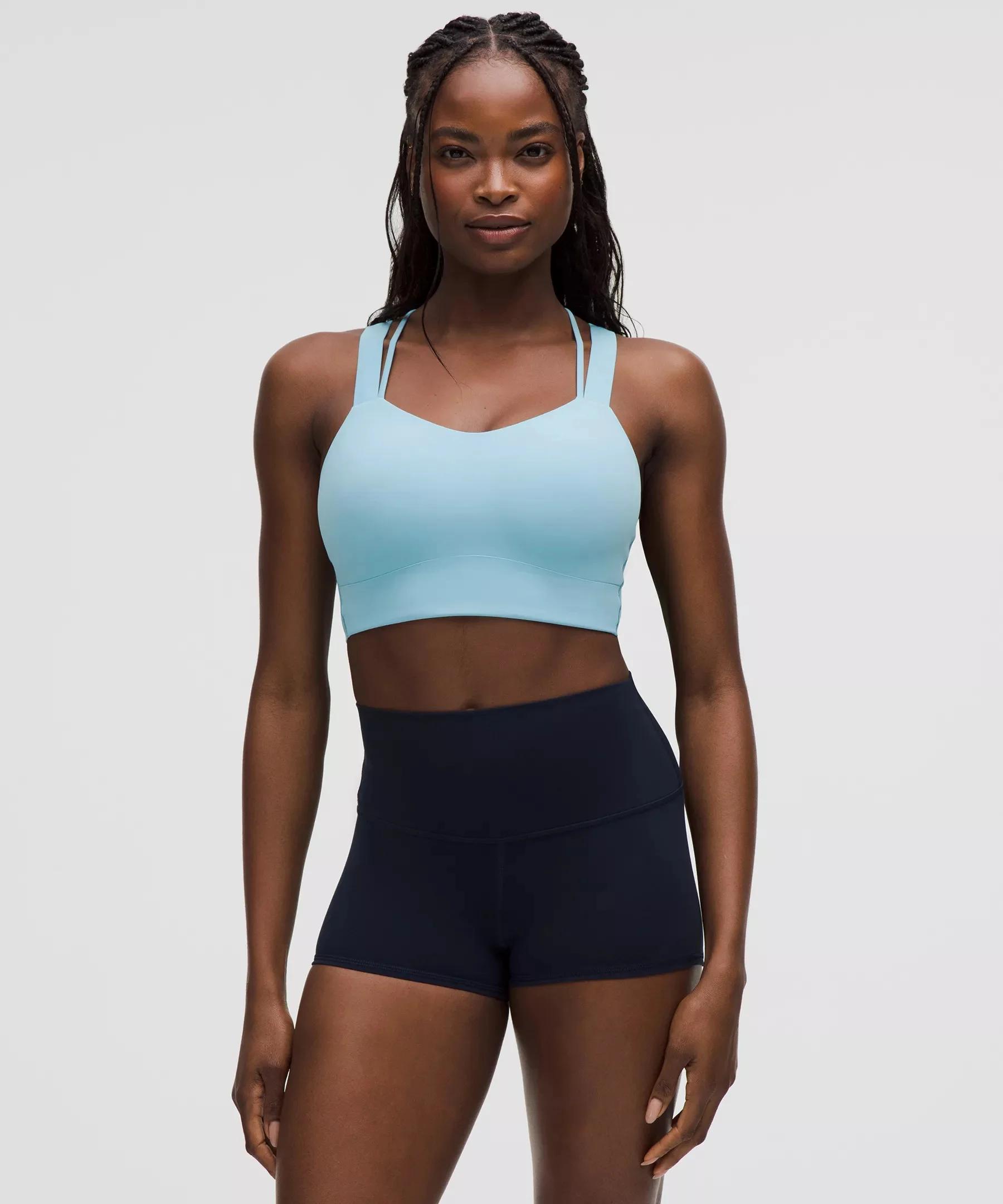 Designed for Yoga and Casual Soft, Sweat-Wicking Fabric - Sweat-wicking - Soft - Quick-drying - Four-way stretch Light Support, D/DD Cups - Intended for low-impact activities Product Features - Moulded foam cups are lightweight and malleable Material and care Materials Bra: 75% Nylon25% Elastane - Cup: Cup Shell: 100% PolyesterCup Foam: 100% PolyurethaneCup Liner: 100% Polyester Care Machine Wash Cold - Do Not Bleach - Line Dry - Do Not Iron - Do Not Dry Clean - Wash With Like Colors