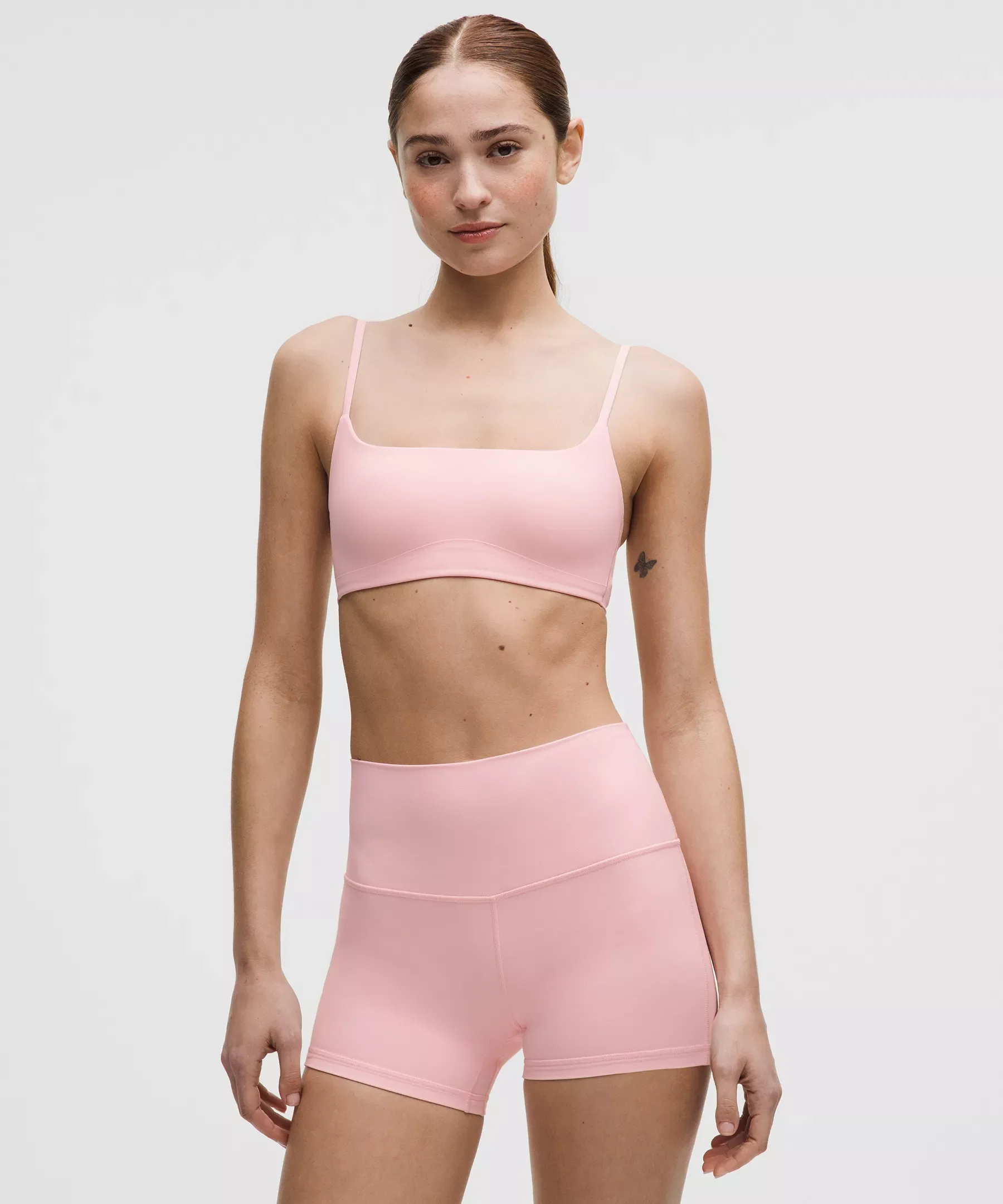 Designed for Yoga and Casual Soft, Sweat-Wicking Fabric - Soft - Sweat-wicking - Four-way stretch - Quick-drying Light Support, A/B Cups - Intended for low-impact activities Product Features - Moulded foam cups are lightweight and malleable Material and care Materials Bra: 75% Nylon25% Elastane - Cup: Cup Foam: 100% PolyurethaneCup Liner: 100% PolyesterCup Shell: 100% Polyester Care Machine Wash Cold - Do Not Bleach - Line Dry - Do Not Iron - Do Not Dry Clean - Wash With Like Colors