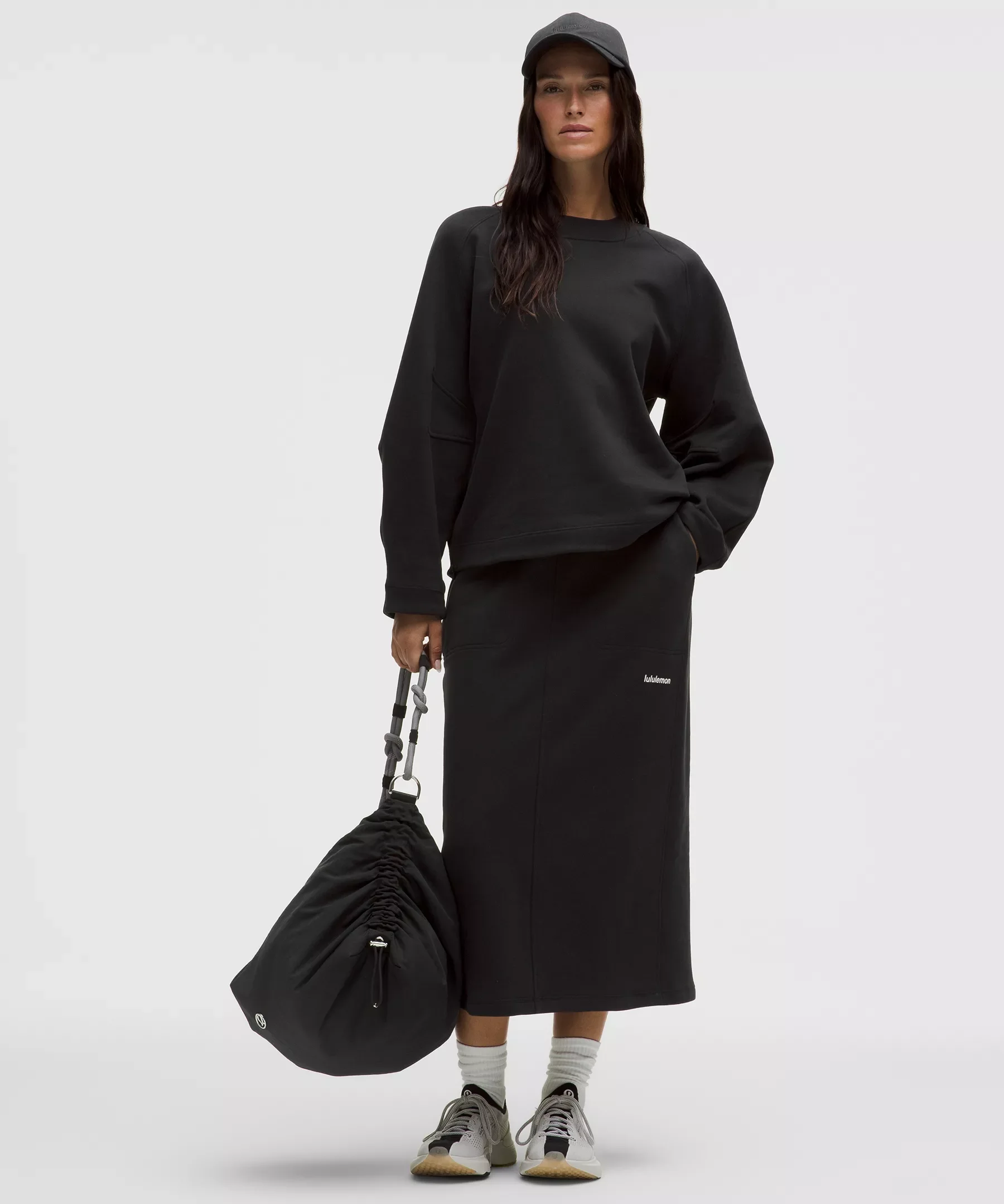 Designed for Casual Warm, Cotton-Blend Fleece Fabric - Warm - Soft - Naturally breathable - Four-way stretch High Rise, Midi Length - Relaxed fit is roomy through glutes and thighs Product Features - Cinch the interior drawcord to customize your fit - Hand pockets, one with a hidden card sleeve - Back slit for ease of movement Material and care Materials Body: 73% Cotton24% Recycled Polyester3% Elastane - Outer Waistband: 65% Recycled Nylon30% Nylon5% Elastane - Inner Waistband: 95% Cotton5% Elastane Care Machine Wash Cold - Do Not Bleach - Tumble Dry Low - Do Not Iron - Do Not Dry Clean - Wash With Like Colors