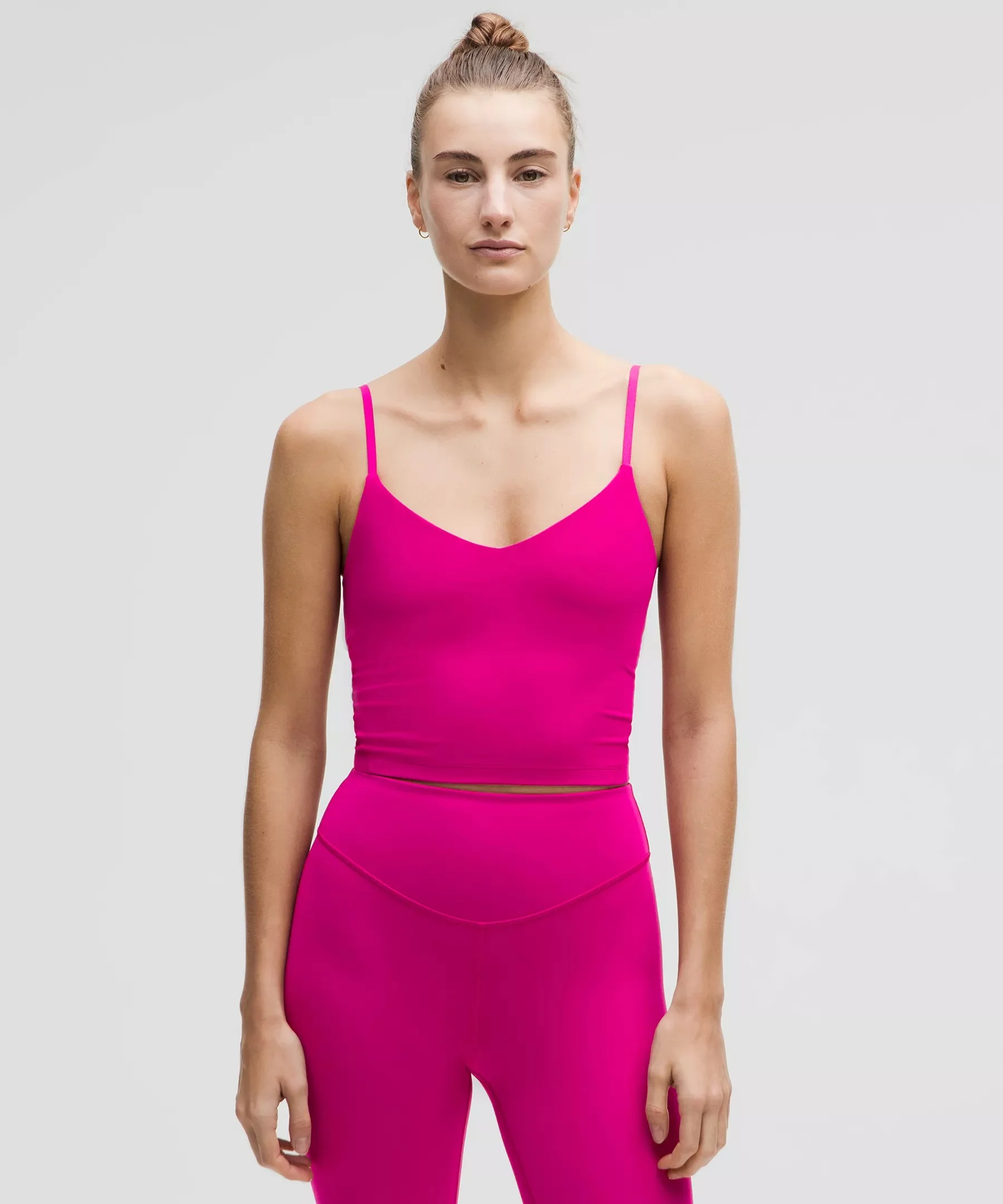 Feels Buttery-Soft and Weightless, Nulu™ Fabric So buttery soft, it feels weightless Four-way stretch Sweat-wicking Breathable Added Lycra® fibre for stretch and shape retention Light Support, A/B Cups Intended for low-impact activities Tight fit contours your body Cropped length is cut above the waist—perfect with high-rise pants Product Features Built-in shelf bra for added support and coverage Pockets for optional, removable cups Adjustable straps Material and care Materials Middle Layer: 89% Nylon11% Elastane Body: 81% Nylon19% Lycra Elastane Bra Lining: 81% Nylon19% Lycra Elastane Care Wash with like colours Machine wash cold Do not bleach Tumble dry low Do not iron Do not dry clean Imported