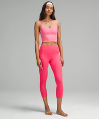 Feels Buttery-Soft and Weightless, Nulu™ Fabric So buttery soft, it feels weightless Four-way stretch Sweat-wicking Breathable Added Lycra® fibre for stretch and shape retention Light Support, A/B Cups Intended for low-impact activities Tight fit contours your body Cropped length is cut above the waist—perfect with high-rise pants Product Features Built-in shelf bra for added support and coverage Pockets for optional, removable cups Adjustable straps Material and care Materials Middle layer: 89% Nylon11% Elastane Bra lining: 81% Nylon19% Lycra® elastane Body: 81% Nylon19% Lycra® elastane Care Wash with like colours Machine wash cold Do not bleach Tumble dry low Do not iron Do not dry clean Imported