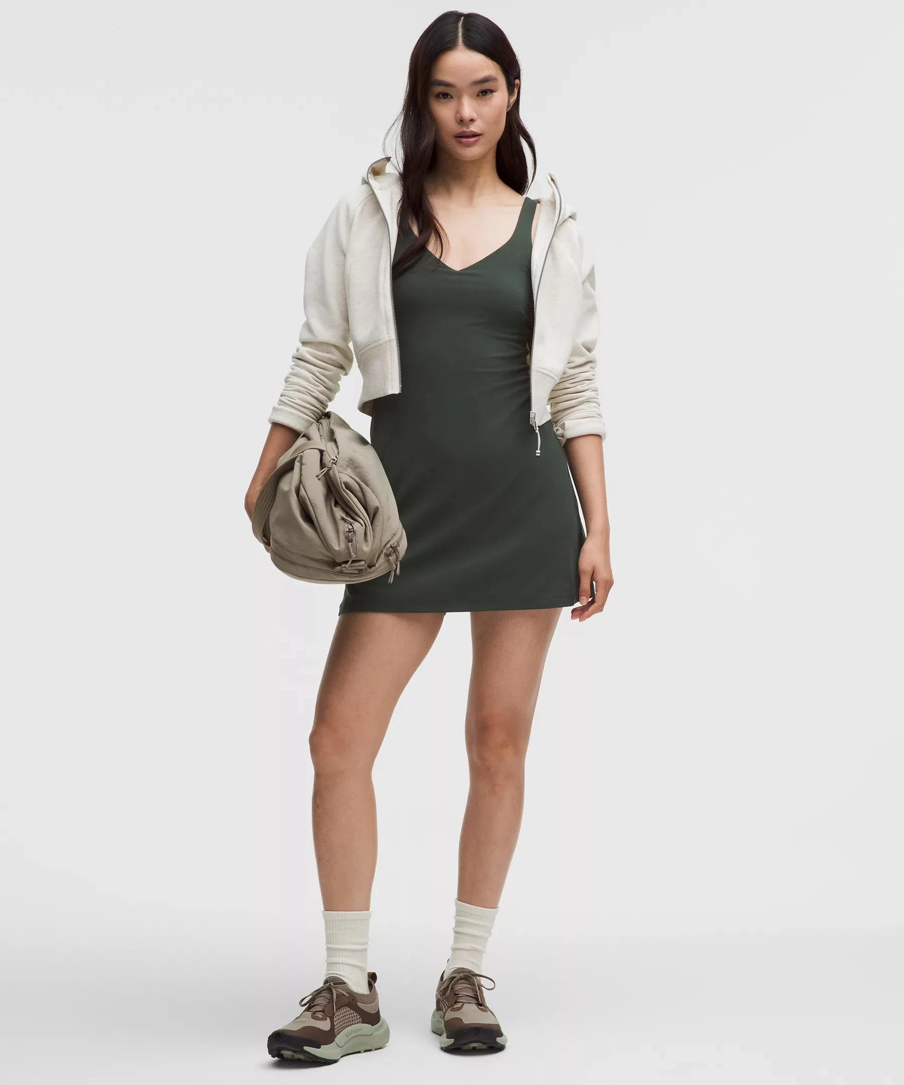 Designed for Yoga and Casual Feels Buttery-Soft and Weightless, Nulu™ Fabric - So buttery soft, it feels weightless - Four-way stretch - Sweat-wicking - Breathable - Added Lycra® fibre for stretch and shape retention Medium Support - Sizes 0-14 fit B/C cups - Sizes 16-20 fit D/DD cups - Tight fit contours your body - Intended to sit at mid-thigh - Intended for medium-impact activities - 4" liner length Product Features - Shorts liner has side drop-in pockets and an open-back waistband to make bathroom breaks a breeze - Built-in shelf bra for added support and coverage - Pockets for optional, removable cups - Built-in liner offers extra coverage Material and care Materials Lining: 56% Polyester33% Coolmax Polyester11% Lycra Elastane - Gusset: 81% Nylon19% Lycra Elastane - Short: 81% Nylon19% Lycra Elastane - Middle Layer: 89% Nylon11% Elastane - Body: 81% Nylon19% Lycra Elastane Care Machine Wash Cold - Do Not Bleach - Tumble Dry Low - Do Not Iron - Do Not Dry Clean - Wash With Like Colors