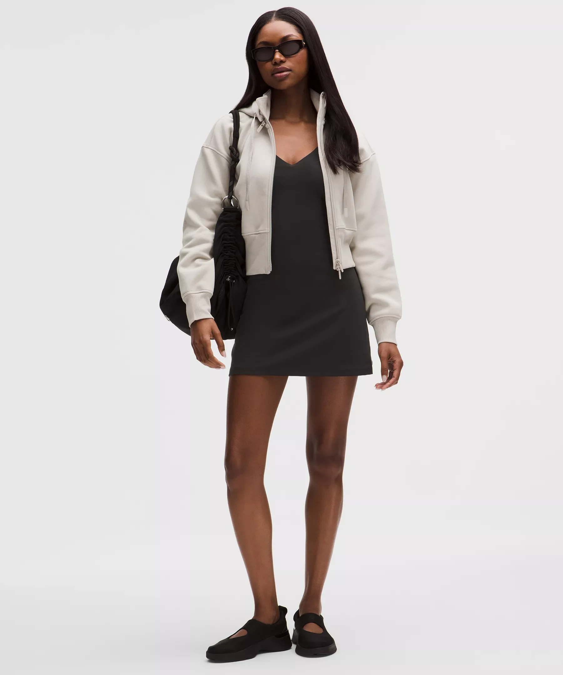 Designed for Yoga and Casual Feels Buttery-Soft and Weightless, Nulu™ Fabric - So buttery soft, it feels weightless - Four-way stretch - Sweat-wicking - Breathable - Added Lycra® fibre for stretch and shape retention - Fully lined with a smooth, four-way stretch, and sweat-wicking fabric Light Support, B/C Cups - Intended for low-impact activities - Tight fit contours your body - Intended to sit at mid-thigh - 4" liner length Product Features - Built-in shelf bra for added support and coverage - Pockets for optional, removable cups - Shorts liner has side drop-in pockets and an open-back waistband to make bathroom breaks a breeze - Built-in shorts liner offers extra coverage Material and care Materials Short: 80% Polyamide20% Lycra Elastane - Middle Layer: 89% Nylon (recycled)11% Elastane - Bra Lining: 83% Polyester (recycled)17% Elastane - Body: 81% Nylon19% Lycra Elastane Care Machine Wash Cold - Do Not Bleach - Tumble Dry Low - Do Not Iron - Do Not Dry Clean - Wash With Like Colors