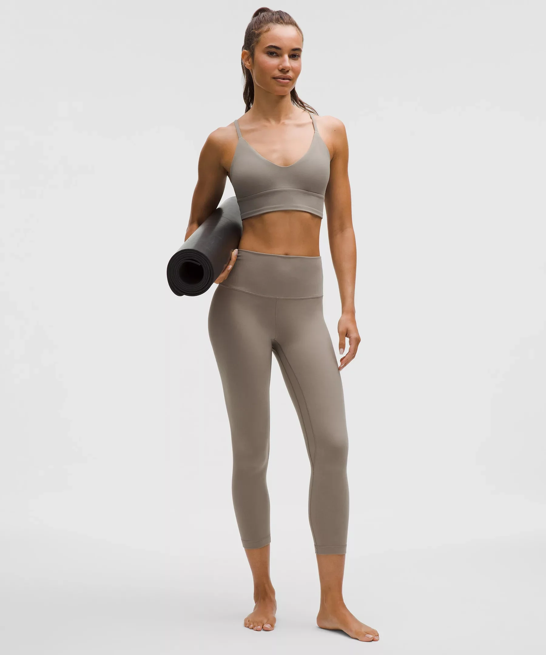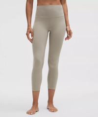 Designed for Yoga Feels Buttery-Soft and Weightless, Nulu™ Fabric - So buttery soft, it feels weightless - Four-way stretch - Sweat-wicking - Breathable - Added Lycra® fibre for stretch and shape retention High Rise, 23" Length - Intended to sit below calf Product Features - Hidden waistband pocket fits a card or a key, and won’t get in your way - This collection’s great for low-impact workouts like yoga, or whenever you want to feel really, really comfortable Material and care Materials Body: 81% Nylon19% Lycra Elastane Care Machine Wash Cold - Do Not Bleach - Tumble Dry Low - Do Not Iron - Do Not Dry Clean - Wash With Like Colors