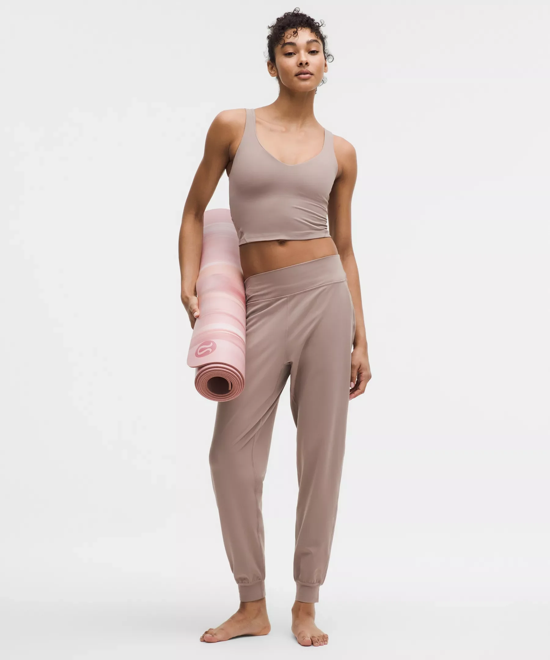 Designed for Yoga Feels Buttery-Soft and Weightless, Nulu™ Fabric - So buttery soft, it feels weightless - Four-way stretch - Sweat-wicking - Breathable - Added Lycra® fibre for stretch and shape retention High Rise, Full Length - Slim fit is streamlined with a little extra room in the seat, thighs, and legs to deliver that relaxed jogger look - Intended to sit at ankle for heights of 5'5"-5'8" Product Features - Waistband lies flat and won't dig in - Hand pockets; one with interior card sleeve - This collection’s great for low-impact workouts like yoga or whenever you want to feel really, really comfortable Material and care Materials Body: 81% Nylon19% Lycra Elastane - Pocket Lining: 90% Nylon10% Lycra Elastane Care Machine Wash Cold - Do Not Bleach - Tumble Dry Low - Do Not Iron - Do Not Dry Clean - Wash With Like Colors