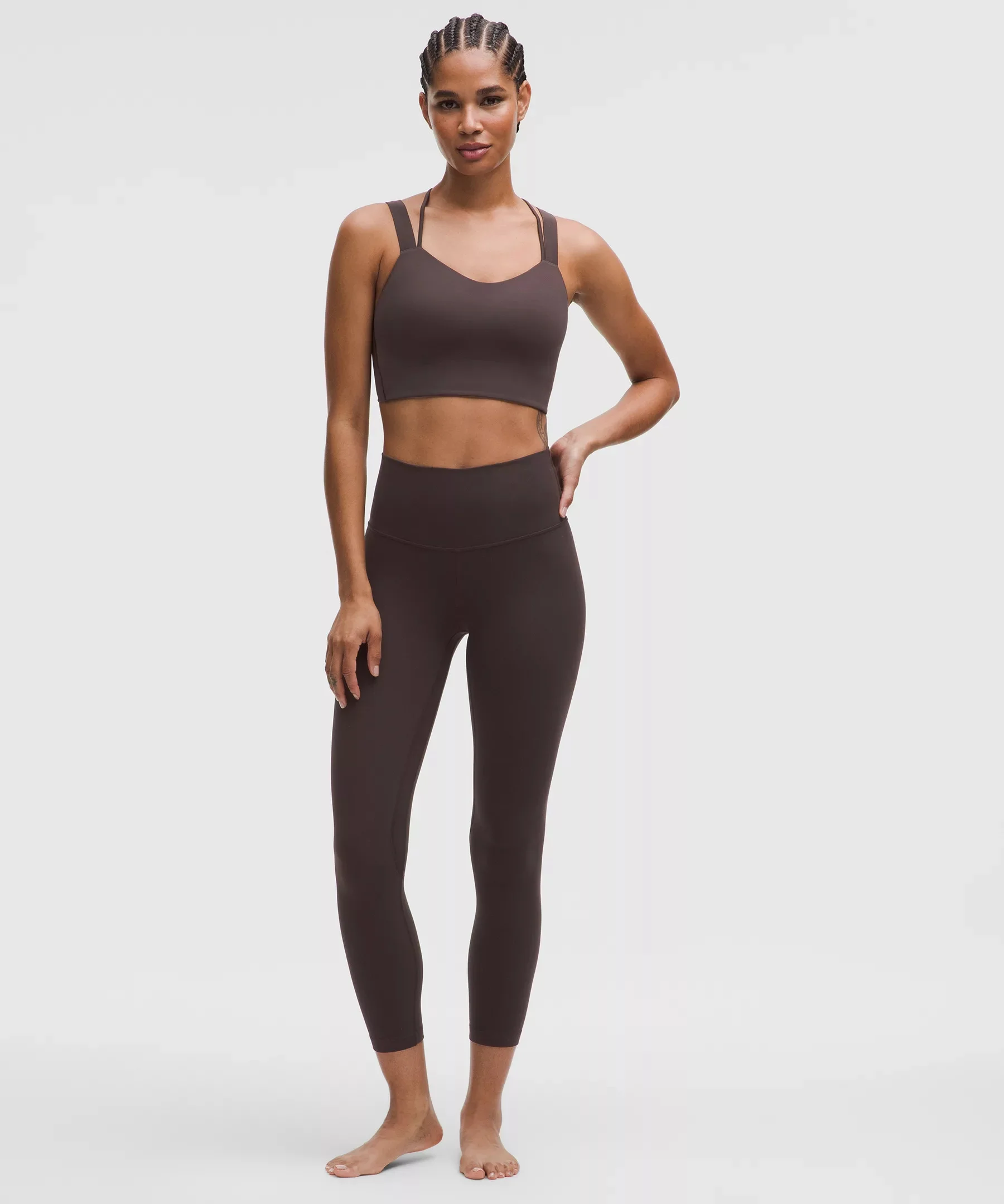 Designed for Yoga Feels Buttery-Soft and Weightless, Nulu™ Fabric - So buttery soft, it feels weightless - Four-way stretch - Sweat-wicking - Breathable - Added Lycra® fibre for stretch and shape retention High Rise, 25" Length - Intended to sit above ankle Product Features - Hidden waistband pocket fits a card or key, and won’t get in your way - This collection’s great for low-impact workouts like yoga or whenever you want to feel really, really comfortable Material and care Materials Body: 81% Nylon19% Lycra Elastane Care Machine Wash Cold - Do Not Bleach - Tumble Dry Low - Do Not Iron - Do Not Dry Clean - Wash With Like Colors