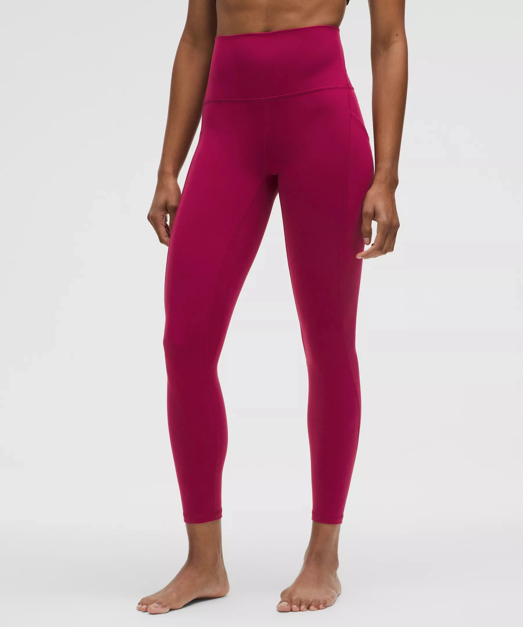 Designed for Yoga Feels Buttery-Soft and Weightless, Nulu™ Fabric - So buttery soft, it feels weightless - Four-way stretch - Sweat-wicking - Breathable - Added Lycra® fibre for stretch and shape retention High Rise, 25" Length - Intended to sit above ankle Product Features - Side drop-in pockets - Back drop-in pocket can hold a key, card, or phone - This collection’s great for low-impact workouts like yoga or whenever you want to feel really, really comfortable Material and care Materials Body: 81% Nylon19% Lycra Elastane - Gusset: 81% Nylon19% Lycra Elastane Care Machine Wash Cold - Do Not Bleach - Tumble Dry Low - Do Not Iron - Do Not Dry Clean - Wash With Like Colors