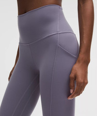 Designed for Yoga Feels Buttery-Soft and Weightless, Nulu™ Fabric - So buttery soft, it feels weightless - Four-way stretch - Sweat-wicking - Breathable - Added Lycra® fibre for stretch and shape retention High Rise, 25" Length - Intended to sit above ankle Product Features - Side drop-in pockets - Back drop-in pocket can hold a key, card, or phone - This collection’s great for low-impact workouts like yoga or whenever you want to feel really, really comfortable Material and care Materials Body: 81% Nylon19% Lycra Elastane Care Machine Wash Cold - Do Not Bleach - Tumble Dry Low - Do Not Iron - Do Not Dry Clean - Wash With Like Colors