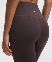 Designed for Yoga Feels Buttery-Soft and Weightless, Nulu™ Fabric - So buttery soft, it feels weightless - Four-way stretch - Sweat-wicking - Breathable - Added Lycra® fibre for stretch and shape retention High Rise, 25" Length - Intended to sit above ankle Product Features - Side drop-in pockets - Back drop-in pocket can hold a key, card, or phone - This collection’s great for low-impact workouts like yoga or whenever you want to feel really, really comfortable Material and care Materials Body: 81% Nylon19% Lycra Elastane Care Machine Wash Cold - Do Not Bleach - Tumble Dry Low - Do Not Iron - Do Not Dry Clean - Wash With Like Colors