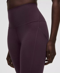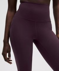 Designed for Yoga Feels Buttery-Soft and Weightless, Nulu™ Fabric - So buttery soft, it feels weightless - Four-way stretch - Sweat-wicking - Breathable - Added Lycra® fibre for stretch and shape retention High Rise, 25" Length - Intended to sit above ankle Product Features - Side drop-in pockets - Back drop-in pocket can hold a key, card, or phone - This collection’s great for low-impact workouts like yoga or whenever you want to feel really, really comfortable Material and care Materials Body: 81% Nylon19% Lycra Elastane Care Machine Wash Cold - Do Not Bleach - Tumble Dry Low - Do Not Iron - Do Not Dry Clean - Wash With Like Colors