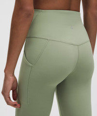 Designed for Yoga Feels Buttery-Soft and Weightless, Nulu™ Fabric - So buttery soft, it feels weightless - Four-way stretch - Sweat-wicking - Breathable - Added Lycra® fibre for stretch and shape retention High Rise, 25" Length - Intended to sit above ankle Product Features - Side drop-in pockets - Back drop-in pocket can hold a key, card, or phone - This collection’s great for low-impact workouts like yoga or whenever you want to feel really, really comfortable Material and care Materials Body: 81% Nylon19% Lycra Elastane - Gusset: 81% Nylon19% Lycra Elastane Care Machine Wash Cold - Do Not Bleach - Tumble Dry Low - Do Not Iron - Do Not Dry Clean - Wash With Like Colors