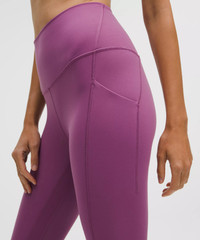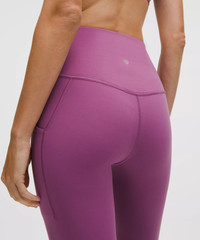 Designed for Yoga Feels Buttery-Soft and Weightless, Nulu™ Fabric - So buttery soft, it feels weightless - Four-way stretch - Sweat-wicking - Breathable - Added Lycra® fibre for stretch and shape retention High Rise, 25" Length - Intended to sit above ankle Product Features - Side drop-in pockets - Back drop-in pocket can hold a key, card, or phone - This collection’s great for low-impact workouts like yoga or whenever you want to feel really, really comfortable Material and care Materials Body: 81% Nylon19% Lycra Elastane Care Machine Wash Cold - Do Not Bleach - Tumble Dry Low - Do Not Iron - Do Not Dry Clean - Wash With Like Colors