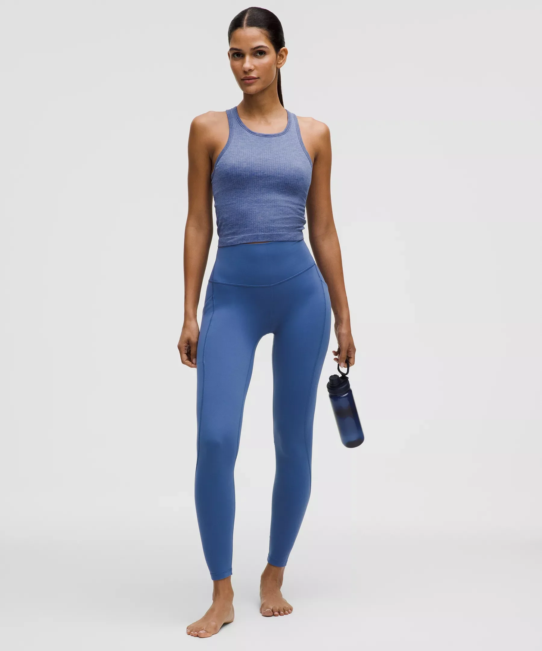 Designed for Yoga Feels Buttery-Soft and Weightless, Nulu™ Fabric - So buttery soft, it feels weightless - Four-way stretch - Sweat-wicking - Breathable - Added Lycra® fibre for stretch and shape retention High Rise, 28" Length - Full length intended to sit at ankle Product Features - Side drop-in pockets - Back drop-in pocket can hold a key, card, or phone - This collection’s great for low-impact workouts like yoga or whenever you want to feel really, really comfortable Material and care Materials Body: 81% Nylon19% Lycra Elastane Care Machine Wash Cold - Do Not Bleach - Tumble Dry Low - Do Not Iron - Do Not Dry Clean - Wash With Like Colors
