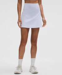 Designed for Yoga and Casual Feels Buttery-Soft and Weightless, Nulu™ Fabric - So buttery soft, it feels weightless - Four-way stretch - Sweat-wicking - Breathable - Added Lycra® fibre for stretch and shape retention Fit Information - High rise - Skirt length is measured at the centre front, from the top of the waistband to the hem - Skirt length by size: 0–2: 15.5", 4–6: 16", 8–10: 16.5", 12–14: 17" - Liner length for all sizes: 3” Product Features - Stash your stuff in the side drop-in pockets on the short liner - Built-in liner offers extra coverage Material and care Materials Short: 81% Nylon19% Lycra Elastane - Body: 81% Nylon19% Lycra Elastane Care Machine Wash Cold - Do Not Bleach - Tumble Dry Low - Do Not Iron - Do Not Dry Clean - Wash With Like Colors