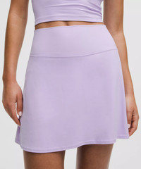 Designed for Yoga and Casual Feels Buttery-Soft and Weightless, Nulu™ Fabric - So buttery soft, it feels weightless - Four-way stretch - Sweat-wicking - Breathable - Added Lycra® fibre for stretch and shape retention Fit Information - High rise - Skirt length is measured at the centre front, from the top of the waistband to the hem - Skirt length by size: 0–2: 15.5", 4–6: 16", 8–10: 16.5", 12–14: 17" - Liner length for all sizes: 3” Product Features - Stash your stuff in the side drop-in pockets on the short liner - Built-in liner offers extra coverage Material and care Materials Short: 81% Nylon19% Lycra Elastane - Body: 81% Nylon19% Lycra Elastane Care Machine Wash Cold - Do Not Bleach - Tumble Dry Low - Do Not Iron - Do Not Dry Clean - Wash With Like Colors