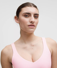 Designed for Yoga Feels Buttery-Soft and Weightless, Nulu™ Fabric - So buttery soft, it feels weightless - Four-way stretch - Sweat-wicking - Breathable - Added Lycra® fibre for stretch and shape retention Light Support - Sizes 0-14 fit A/B cups - Sizes 16-20 fit C/D cups - Tight fit contours your body - Cropped length is cut above the waist—perfect with high-rise pants - Intended for low-impact activities Product Features - Built-in shelf bra for added support and coverage - Pockets for optional, removable cups Material and care Materials Middle Layer: 89% Nylon11% Elastane - Body: 81% Nylon19% Lycra Elastane - Bra Lining: 81% Nylon19% Lycra Elastane Care Machine Wash Cold - Do Not Bleach - Tumble Dry Low - Do Not Iron - Do Not Dry Clean - Wash With Like Colors