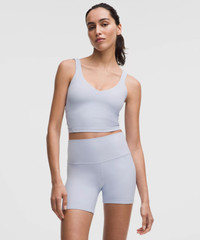 Designed for Yoga Feels Buttery-Soft and Weightless, Nulu™ Fabric - So buttery soft, it feels weightless - Four-way stretch - Sweat-wicking - Breathable - Added Lycra® fibre for stretch and shape retention Light Support - Sizes 0-14 fit A/B cups - Sizes 16-20 fit C/D cups - Tight fit contours your body - Cropped length is cut above the waist—perfect with high-rise pants - Intended for low-impact activities Product Features - Built-in shelf bra for added support and coverage - Pockets for optional, removable cups Material and care Materials Bra Lining: 81% Nylon19% Lycra Elastane - Middle Layer: 89% Nylon11% Elastane - Body: 81% Nylon19% Lycra Elastane Care Machine Wash Cold - Do Not Bleach - Tumble Dry Low - Do Not Iron - Do Not Dry Clean - Wash With Like Colors