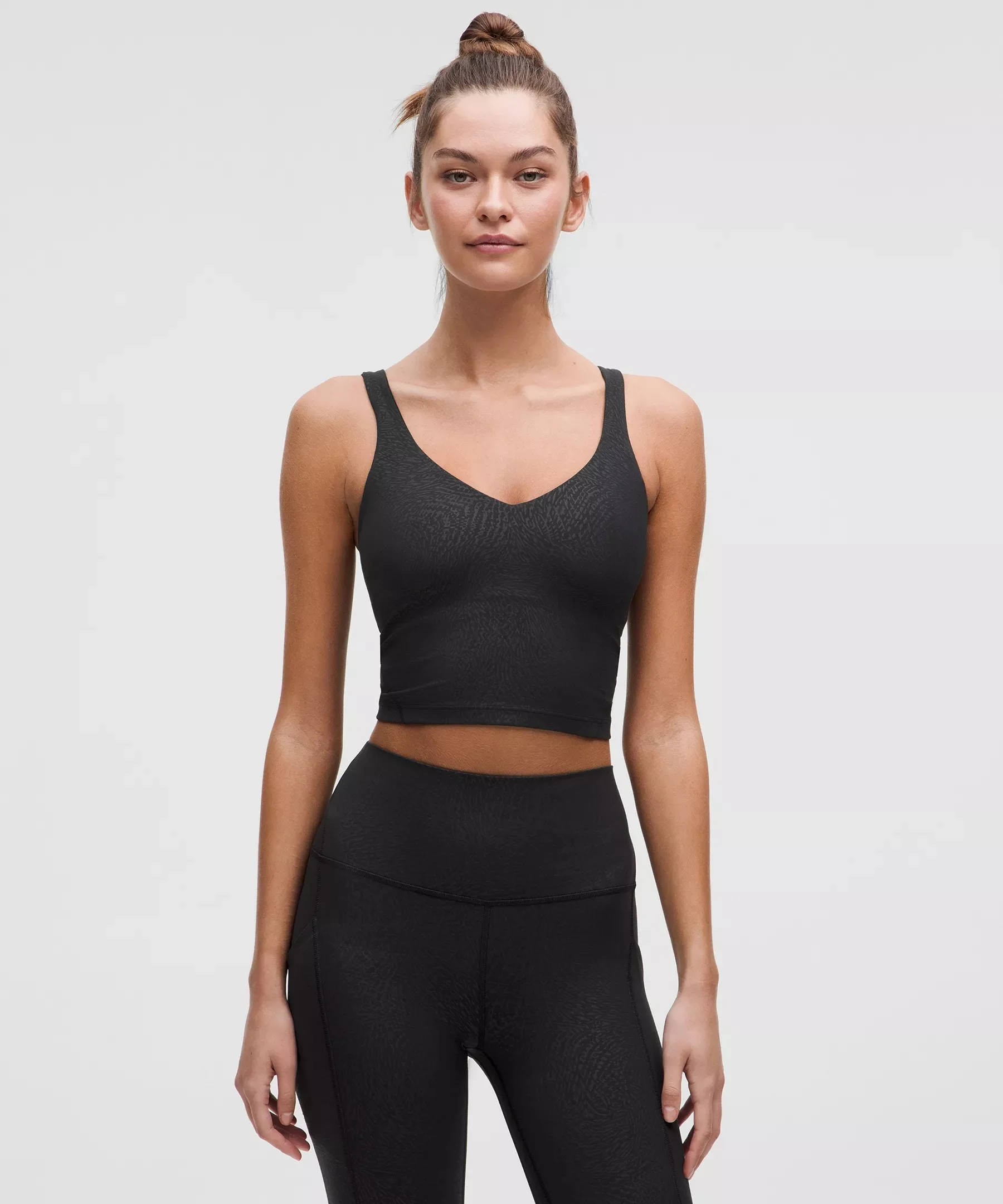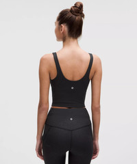 Feels Buttery-Soft and Weightless, Nulu™ Fabric So buttery soft, it feels weightless Four-way stretch Sweat-wicking Breathable Added Lycra® fibre for stretch and shape retention Light Support Sizes 0-14 fit A/B cups Sizes 16-20 fit C/D cups Tight fit contours your body Cropped length is cut above the waist—perfect with high-rise pants Light support is intended for low-impact activities Product Features Built-in shelf bra for added support and coverage Pockets for optional, removable cups Material and care Materials Middle Layer: 89% Nylon11% Elastane Body: 80% Nylon20% Lycra Elastane Bra Lining: 81% Nylon19% Lycra Elastane Care Wash with like colours Machine wash cold Do not bleach Line dry Do not iron Do not dry clean Imported