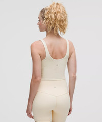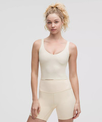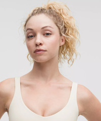 Designed for Yoga Feels Buttery-Soft and Weightless, Nulu™ Fabric - So buttery soft, it feels weightless - Four-way stretch - Sweat-wicking - Breathable - Added Lycra® fibre for stretch and shape retention Light Support - Sizes 0-14 fit A/B cups - Sizes 16-20 fit C/D cups - Tight fit contours your body - Cropped length is cut above the waist—perfect with high-rise pants - Intended for low-impact activities Product Features - Built-in shelf bra for added support and coverage - Pockets for optional, removable cups Material and care Materials Bra Lining: 81% Nylon19% Lycra Elastane - Body: 81% Nylon19% Lycra Elastane - Middle Layer: 89% Nylon11% Elastane Care Machine Wash Cold - Do Not Bleach - Tumble Dry Low - Do Not Iron - Do Not Dry Clean - Wash With Like Colors