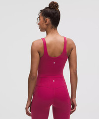 Designed for Yoga Feels Buttery-Soft and Weightless, Nulu™ Fabric - So buttery soft, it feels weightless - Four-way stretch - Sweat-wicking - Breathable - Added Lycra® fibre for stretch and shape retention Light Support - Sizes 0-14 fit A/B cups - Sizes 16-20 fit C/D cups - Tight fit contours your body - Cropped length is cut above the waist—perfect with high-rise pants - Intended for low-impact activities Product Features - Built-in shelf bra for added support and coverage - Pockets for optional, removable cups Material and care Materials Body: 81% Nylon19% Lycra Elastane - Middle Layer: 89% Nylon11% Elastane - Bra Lining: 81% Nylon19% Lycra Elastane Care Machine Wash Cold - Do Not Bleach - Tumble Dry Low - Do Not Iron - Do Not Dry Clean - Wash With Like Colors