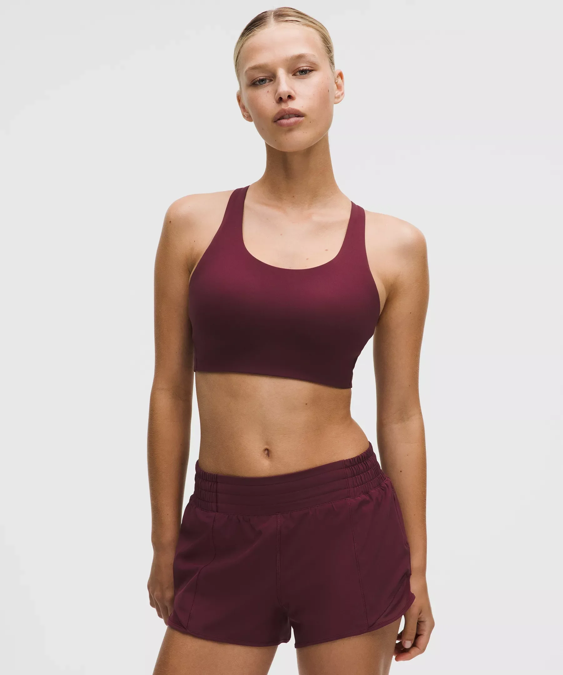 Designed for Running Sweat-Wicking Fabric - Sweat-wicking - Quick-drying High Support, B–G Cups - Intended for high-impact activities, such as running Product Features - Foam cups provide coverage and shaping - Adjustable double-crossback straps offer comfort and support - Soft, brushed underband - Hook-and-eye closure for a customized underband fit Material and care Materials Bra: 78% Nylon22% Elastane - Bra Lining: 71% Nylon29% Elastane - Cup: Cup Shell: 100% PolyesterCup Foam: 100% Polyurethane FoamCup Liner: 92% Polyester, 8% Elastane Care Machine Wash Cold - Do Not Bleach - Line Dry - Do Not Iron - Do Not Dry Clean - Wash With Like Colors