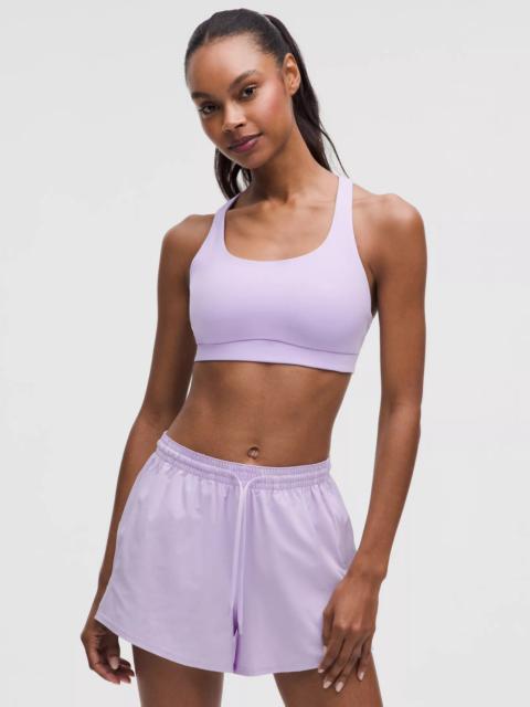Designed for Yoga and Training Smooth, Sweat-Wicking Fabric - Sweat-wicking - Smooth - Four-way stretch - Quick-drying - Added elastane improves stretch and shape retention Medium Support, B–D Cups - Intended for medium-impact activities Product Features - Back crossover straps are placed to clear shoulder blades for minimal distractions and have varied widths for dimension - Lightweight elastic underband is thoughtfully constructed with low-profile seams for optimal comfort - Pockets for optional, removable cups Material and care Materials Bra Lining: Face: 89% Polyester (recycled), 11% Elastane - Bra: Face: 77% Nylon (recycled), 23% Elastane - Middle Layer: 89% Nylon11% Elastane Care Machine Wash Cold - Do Not Bleach - Tumble Dry Low - Do Not Iron - Do Not Dry Clean - Wash With Like Colors