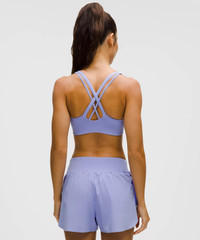 Designed for Yoga and Training Smooth, Sweat-Wicking Fabric - Sweat-wicking - Smooth - Four-way stretch - Quick-drying - Added elastane improves stretch and shape retention Medium Support, B–D Cups - Intended for medium-impact activities Product Features - Back crossover straps are placed to clear shoulder blades for minimal distractions and have varied widths for dimension - Lightweight elastic underband is thoughtfully constructed with low-profile seams for optimal comfort - Pockets for optional, removable cups Material and care Materials Bra: Face: 77% Recycled Nylon, 23% Elastane - Middle Layer: 89% Nylon11% Elastane - Bra Lining: Face: 89% Recycled Polyester, 11% Elastane Care Machine Wash Cold - Do Not Bleach - Tumble Dry Low - Do Not Iron - Do Not Dry Clean - Wash With Like Colors