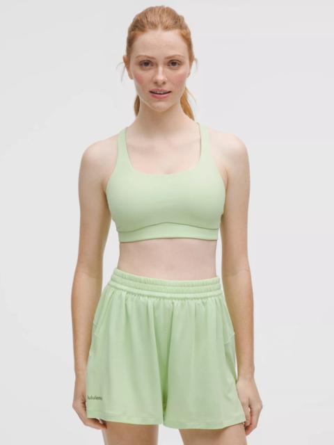 Designed for Yoga and Training Smooth, Sweat-Wicking Fabric - Sweat-wicking - Smooth - Four-way stretch - Quick-drying - Added elastane improves stretch and shape retention Medium Support, B–D Cups - Intended for medium-impact activities Product Features - Back crossover straps are placed to clear shoulder blades for minimal distractions and have varied widths for dimension - Lightweight elastic underband is thoughtfully constructed with low-profile seams for optimal comfort - Pockets for optional, removable cups Material and care Materials Middle Layer: 89% Nylon11% Elastane - Bra: Face: 77% Recycled Nylon, 23% Elastane - Bra Lining: Face: 89% Recycled Polyester, 11% Elastane Care Machine Wash Cold - Do Not Bleach - Tumble Dry Low - Do Not Iron - Do Not Dry Clean - Wash With Like Colors