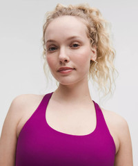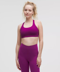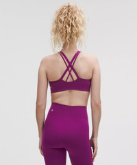 Designed for Yoga and Training Smooth, Sweat-Wicking Fabric - Sweat-wicking - Smooth - Four-way stretch - Quick-drying - Added elastane improves stretch and shape retention - 100% of the polyester in this product is recycled (excluding trims) - This product contains recycled nylon made from repurposed plastic waste Medium Support, B-D Cups - Intended for medium-impact activities Product Features - Back crossover straps are placed to clear shoulder blades for minimal distractions and have varied widths for dimension - Lightweight elastic underband is thoughtfully constructed with low-profile seams for optimal comfort - Pockets for optional, removable cups Material and care Materials Bra Lining: Face: 89% Recycled Polyester, 11% Elastane - Middle Layer: 69% Nylon31% Elastane - Bra: 77% Recycled Nylon23% Elastane Care Machine Wash Cold - Do Not Bleach - Tumble Dry Low - Do Not Iron - Do Not Dry Clean - Wash With Like Colors