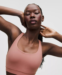 Designed for Yoga and Training Slick and Low-Friction Support, Luxtreme™ Fabric - Slick and low-friction support - Sweat-wicking - Four-way stretch - Breathable - Feels cool to the touch - Added Lycra® fibre for stretch and shape retention Medium Support, B–D Cups - Intended for medium-impact activities Product Features - Pockets for optional, removable cups Material and care Materials Bra: 77% Nylon23% Lycra Elastane - Middle Layer: 89% Nylon11% Elastane - Bra Lining: 56% Polyester33% Coolmax Polyester11% Lycra Elastane Care Machine Wash Cold - Do Not Bleach - Line Dry - Do Not Iron - Do Not Dry Clean - Wash With Like Colors