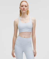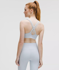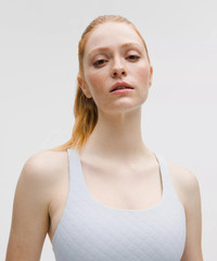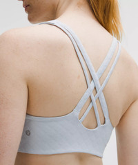 Designed for Yoga and Training Sweat-Wicking, Jacquard Fabric - Sweat-wicking - Four-way stretch - Quick-drying - Our jacquard technique creates fabric with a rich texture - Added Lycra® fibre for stretch and shape retention Medium Support, B-D Cups - Intended for medium-impact activities Product Features - Back crossover straps are placed to clear shoulder blades for minimal distractions and have varied widths for dimension - Lightweight elastic underband is thoughtfully constructed with low-profile seams for optimal comfort - Pockets for optional, removable cups Material and care Materials Lining: Face: 89% Recycled Polyester, 11% Elastane - Body: 70% Polyamide30% Lycra Elastane - Middle Layer: 89% Nylon11% Elastane Care Machine Wash Cold - Do Not Bleach - Tumble Dry Low - Do Not Iron - Do Not Dry Clean - Wash With Like Colors