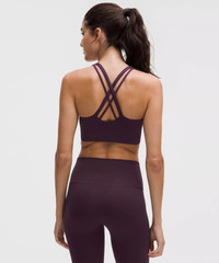 Designed for Yoga and Training Smooth, Sweat-Wicking Fabric - Sweat-wicking - Smooth - Four-way stretch - Quick-drying - Added elastane improves stretch and shape retention Medium Support, B–D Cups - Intended for medium-impact activities - Medium support that doesn't feel restrictive Product Features - Back crossover straps are placed to clear shoulder blades for minimal distractions and have varied widths for dimension - Lightweight elastic underband is thoughtfully constructed with low-profile seams for optimal comfort - Pockets for optional, removable cups Material and care Materials Bra Lining: Face: 89% Recycled Polyester, 11% Elastane - Bra: 77% Recycled Nylon23% Elastane Care Machine Wash Cold - Do Not Bleach - Tumble Dry Low - Do Not Iron - Do Not Dry Clean - Wash With Like Colors