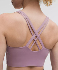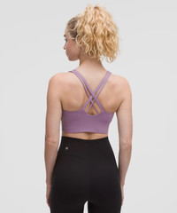 Designed for Yoga and Training Smooth, Sweat-Wicking Fabric - Sweat-wicking - Smooth - Four-way stretch - Quick-drying - Added elastane improves stretch and shape retention Medium Support, B–D Cups - Intended for medium-impact activities - Medium support that doesn't feel restrictive Product Features - Back crossover straps are placed to clear shoulder blades for minimal distractions and have varied widths for dimension - Lightweight elastic underband is thoughtfully constructed with low-profile seams for optimal comfort - Pockets for optional, removable cups Material and care Materials Bra Lining: Face: 89% Recycled Polyester, 11% Elastane - Bra: Face: 77% Recycled Nylon, 23% Elastane - Middle Layer: 69% Nylon31% Elastane Care Machine Wash Cold - Do Not Bleach - Tumble Dry Low - Do Not Iron - Do Not Dry Clean - Wash With Like Colors