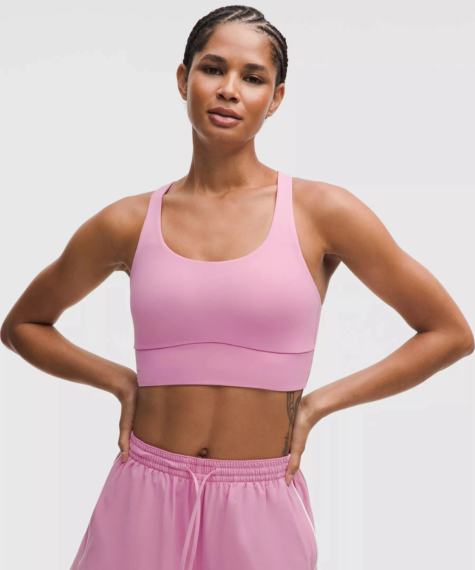 Designed for Yoga and Training Smooth, Sweat-Wicking Fabric - Sweat-wicking - Smooth - Four-way stretch - Quick-drying - Added elastane improves stretch and shape retention Medium Support, B–D Cups - Intended for medium-impact activities - Medium support that doesn't feel restrictive Product Features - Back crossover straps are placed to clear shoulder blades for minimal distractions and have varied widths for dimension - Lightweight elastic underband is thoughtfully constructed with low-profile seams for optimal comfort - Pockets for optional, removable cups Material and care Materials Body: 94% Lenzing Modal6% Elastane Care Machine Wash Cold - Do Not Bleach - Tumble Dry Low - Do Not Iron - Do Not Dry Clean - Wash With Like Colors