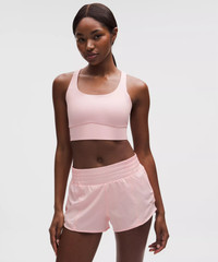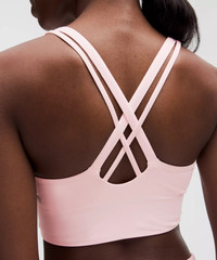 Designed for Yoga and Training Smooth, Sweat-Wicking Fabric - Sweat-wicking - Smooth - Four-way stretch - Quick-drying - Added elastane improves stretch and shape retention Medium Support, B–D Cups - Intended for medium-impact activities - Medium support that doesn't feel restrictive Product Features - Back crossover straps are placed to clear shoulder blades for minimal distractions and have varied widths for dimension - Lightweight elastic underband is thoughtfully constructed with low-profile seams for optimal comfort - Pockets for optional, removable cups Material and care Materials Bra Lining: Face: 89% Polyester (recycled), 11% Elastane - Bra: 77% Nylon (recycled)23% Elastane Care Machine Wash Cold - Do Not Bleach - Tumble Dry Low - Do Not Iron - Do Not Dry Clean - Wash With Like Colors