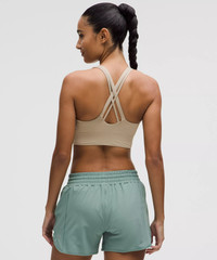 Designed for Yoga and Training Smooth, Sweat-Wicking Fabric - Sweat-wicking - Smooth - Four-way stretch - Quick-drying - Added elastane improves stretch and shape retention Medium Support, B–D Cups - Intended for medium-impact activities - Medium support that doesn't feel restrictive Product Features - Back crossover straps are placed to clear shoulder blades for minimal distractions and have varied widths for dimension - Lightweight elastic underband is thoughtfully constructed with low-profile seams for optimal comfort - Pockets for optional, removable cups Material and care Materials Middle Layer: 69% Nylon31% Elastane - Bra: Face: 77% Recycled Nylon, 23% Elastane - Bra Lining: Face: 89% Recycled Polyester, 11% Elastane Care Machine Wash Cold - Do Not Bleach - Line Dry - Do Not Iron - Do Not Dry Clean - Wash With Like Colors