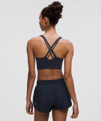 Designed for Yoga and Training Smooth, Sweat-Wicking Fabric - Sweat-wicking - Smooth - Four-way stretch - Quick-drying - Added elastane improves stretch and shape retention - 100% of the polyester in this product is recycled (excluding trims) - This product contains recycled nylon made from repurposed plastic waste Medium Support, B–D Cups - Intended for medium-impact activities Product Features - Back crossover straps are placed to clear shoulder blades for minimal distractions and have varied widths for dimension - Lightweight elastic underband is thoughtfully constructed with low-profile seams for optimal comfort - Pockets for optional, removable cups Material and care Materials Bra: Face: 77% Recycled Nylon, 23% Elastane - Middle Layer: 69% Nylon31% Elastane - Bra Lining: Face: 89% Recycled Polyester, 11% Elastane Care Machine Wash Cold - Do Not Bleach - Tumble Dry Low - Do Not Iron - Do Not Dry Clean - Wash With Like Colors