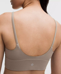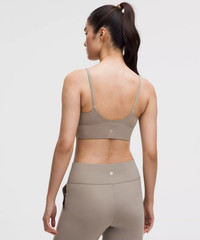 Designed for Yoga Feels Buttery-Soft and Weightless, Nulu™ Fabric - So buttery soft, it feels weightless - Four-way stretch - Sweat-wicking - Breathable - Added Lycra® fibre for stretch and shape retention Light Support, A/B Cups - Intended for low-impact activities Product Features - Minimal construction and moulded cups give shaping and a lightweight, comfortable sensation - Removable cup inserts provide extra coverage - High-stretch underband sits comfortably on body and is easy to put on and take off Material and care Materials Bra Lining: 81% Nylon19% Lycra Elastane - Bra: 81% Nylon19% Lycra Elastane - Middle Layer: 73% Nylon27% Lycra Elastane Care Machine Wash Cold - Do Not Bleach - Line Dry - Do Not Iron - Do Not Dry Clean - Wash With Like Colors
