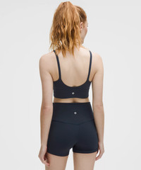 Designed for Yoga Feels Buttery-Soft and Weightless, Nulu™ Fabric - So buttery soft, it feels weightless - Four-way stretch - Sweat-wicking - Breathable - Added Lycra® fibre for stretch and shape retention Light Support, C/D Cups - Intended for low-impact activities Product Features - Minimal construction and moulded cups give shaping and a lightweight, comfortable sensation - Removable cup inserts provide extra coverage - High-stretch underband sits comfortably on body and is easy to put on and take off Material and care Materials Bra: 81% Nylon19% Lycra Elastane - Bra Lining: 81% Nylon19% Lycra Elastane - Middle Layer: 73% Nylon27% Lycra Elastane Care Machine Wash Cold - Do Not Bleach - Line Dry - Do Not Iron - Do Not Dry Clean - Wash With Like Colors
