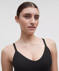 Designed for Yoga Feels Buttery-Soft and Weightless, Nulu™ Fabric - So buttery soft, it feels weightless - Four-way stretch - Sweat-wicking - Breathable - Added Lycra® fibre for stretch and shape retention Light Support, C/D Cups - Intended for low-impact activities Product Features - Minimal construction and moulded cups give shaping and a lightweight, comfortable sensation - Removable cup inserts provide extra coverage - High-stretch underband sits comfortably on body and is easy to put on and take off Material and care Materials Bra Lining: 81% Nylon19% Lycra Elastane - Bra: 81% Nylon19% Lycra Elastane - Middle Layer: 73% Nylon27% Lycra Elastane Care Machine Wash Cold - Do Not Bleach - Line Dry - Do Not Iron - Do Not Dry Clean - Wash With Like Colors