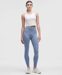 Designed for Training Sleek and Sculpting, Ultralu™ Fabric - Sleek - Has a supportive fit that smooths and sculpts without holding you back - Four-way stretch - Sweat-wicking - Quick-drying - Added Lycra® fibre for stretch and shape retention - When wearing light-coloured tights, we recommend light or skin tone underwear Super-High Rise, 25" Length - Intended to sit above ankle - Minimally seamed, bonded waistband will feel snug as you pull over your hips. Once on, expect a smoothing yet comfortably supportive fit - Always wear Align Pants? You may want to consider sizing up. Always wear Wunder Train Tights? We recommend getting your usual size Product Features - Minimally seamed waistband panel uses bonded construction for a smoothing yet comfortably supportive fit - Laser-cut hem won't dig in Material and care Materials Gusset: 90% Recycled Polyester10% Lycra Elastane - Body: 76% Nylon24% Lycra Elastane Care Wash With Like Colors - Do Not Bleach - Tumble Dry Low - Do Not Iron - Do Not Dry Clean - Wash With Like Colors
