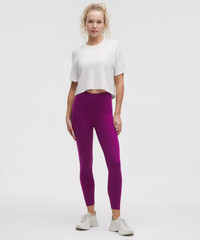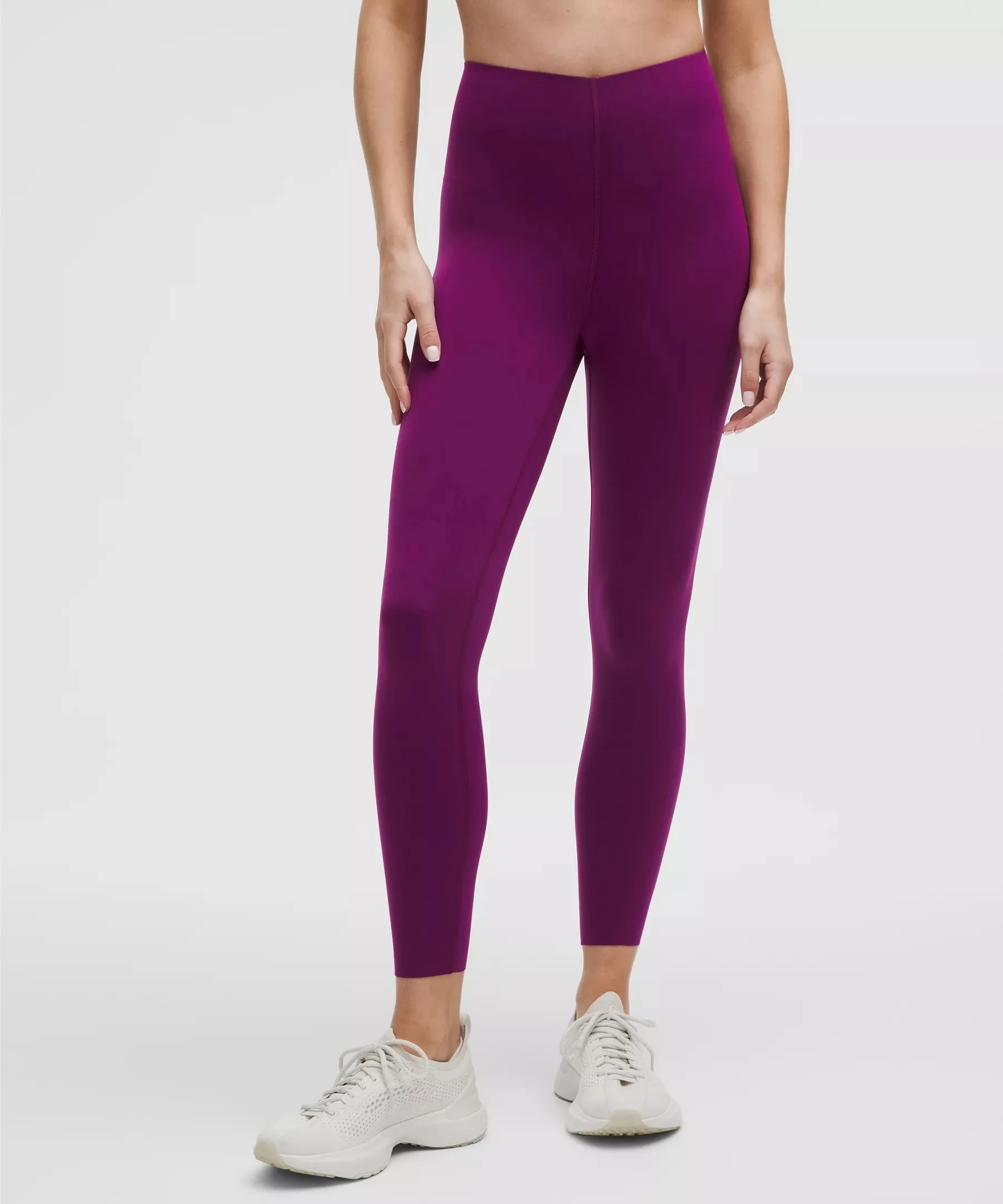 Designed for Training Sleek and Sculpting, Ultralu™ Fabric - Sleek - Has a supportive fit that smooths and sculpts without holding you back - Four-way stretch - Sweat-wicking - Quick-drying - Added Lycra® fibre for stretch and shape retention - When wearing light-coloured tights, we recommend light or skin tone underwear Super-High Rise, 25" Length - Intended to sit above ankle - Minimally seamed, bonded waistband will feel snug as you pull over your hips. Once on, expect a smoothing yet comfortably supportive fit - Always wear Align Pants? You may want to consider sizing up. Always wear Wunder Train Tights? We recommend getting your usual size Product Features - Minimally seamed waistband panel uses bonded construction for a smoothing yet comfortably supportive fit - Laser-cut hem won't dig in Material and care Materials Gusset: 90% Recycled Polyester10% Lycra Elastane - Body: 76% Nylon24% Lycra Elastane Care Wash With Like Colors - Do Not Bleach - Tumble Dry Low - Do Not Iron - Do Not Dry Clean - Wash With Like Colors