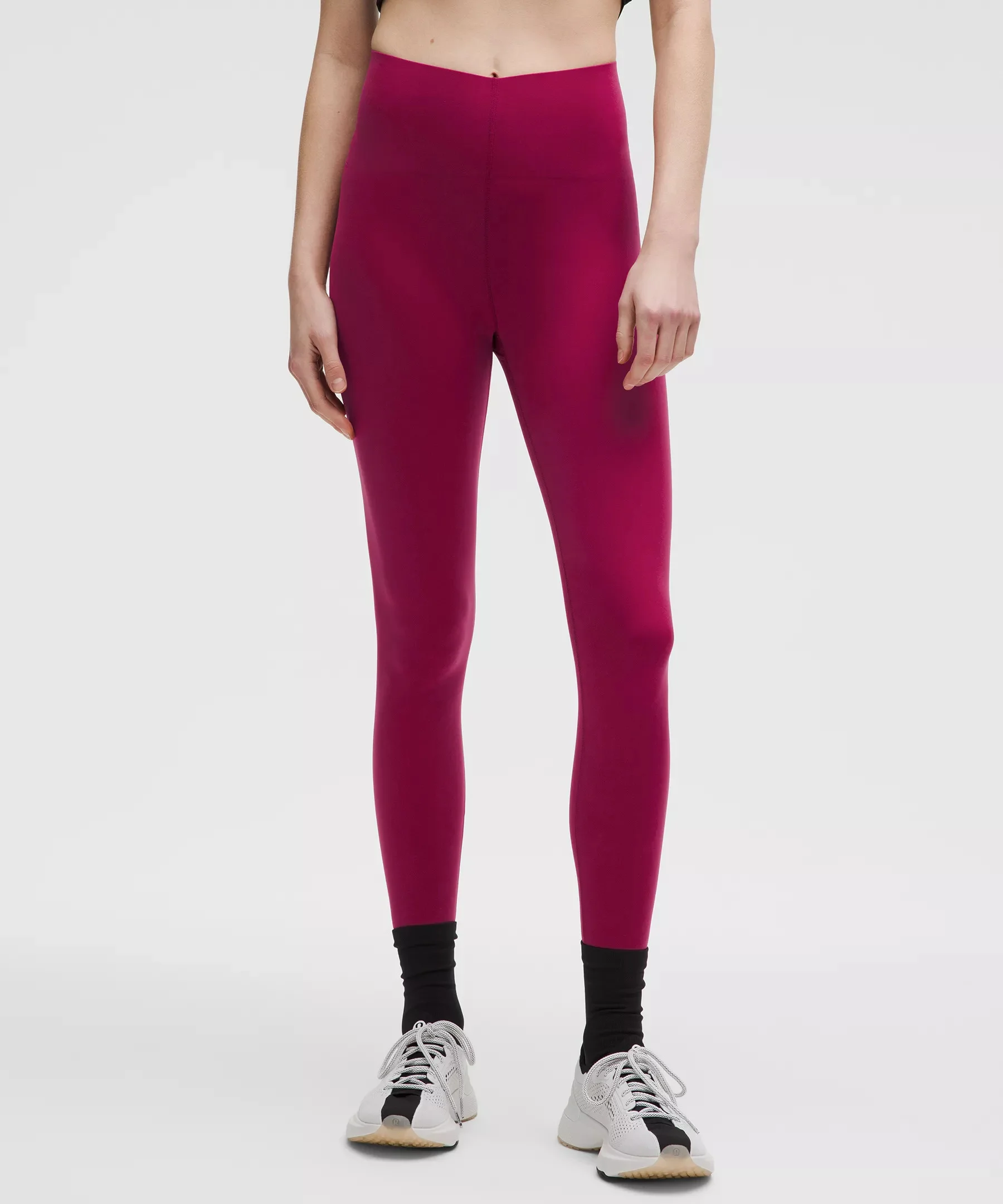 Designed for Training Sleek and Sculpting, Ultralu™ Fabric - Sleek - Has a supportive fit that smooths and sculpts without holding you back - Four-way stretch - Sweat-wicking - Quick-drying - Added Lycra® fibre for stretch and shape retention - When wearing light-coloured tights, we recommend light or skin tone underwear Super-High Rise, 25" Length - Intended to sit above ankle - Minimally seamed, bonded waistband will feel snug as you pull over your hips. Once on, expect a smoothing yet comfortably supportive fit - Always wear Align Pants? You may want to consider sizing up. Always wear Wunder Train Tights? We recommend getting your usual size Product Features - Minimally seamed waistband panel uses bonded construction for a smoothing yet comfortably supportive fit - Laser-cut hem won't dig in Material and care Materials Gusset: 90% Recycled Polyester10% Lycra Elastane - Body: 76% Nylon24% Lycra Elastane Care Wash With Like Colors - Do Not Bleach - Tumble Dry Low - Do Not Iron - Do Not Dry Clean - Wash With Like Colors