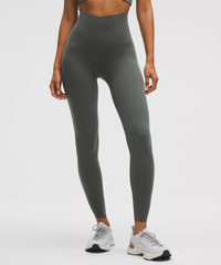 Designed for Training Sleek and Sculpting, Ultralu™ Fabric - Sleek - Has a supportive fit that smooths and sculpts without holding you back - Four-way stretch - Sweat-wicking - Quick-drying - Added Lycra® fibre for stretch and shape retention Super-High Rise, 28" Length - Full length intended to sit at ankle - Minimally seamed, bonded waistband will feel snug as you pull over your hips. Once on, expect a smoothing yet comfortably supportive fit - Always wear Align Pants? You may want to consider sizing up. Always wear Wunder Train Tights? We recommend getting your usual size Product Features - Minimally seamed waistband panel uses bonded construction for a smoothing yet comfortably supportive fit - Laser-cut hem won't dig in Material and care Materials Gusset: 90% Recycled Polyester10% Lycra Elastane - Body: 76% Nylon24% Lycra Elastane Care Wash With Like Colors - Do Not Bleach - Tumble Dry Low - Do Not Iron - Do Not Dry Clean - Wash With Like Colors