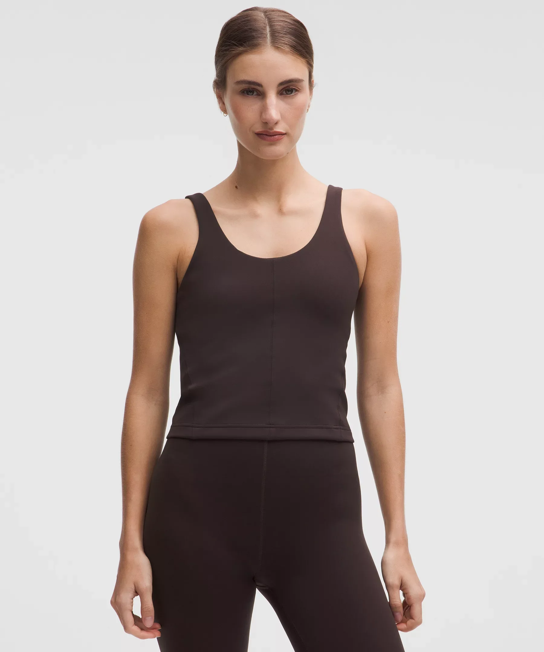 Designed for Training Smooth and Supportive, Ultralu™ Fabric - Smooth support that moulds to your body - Sweat-wicking - Quick-drying - Four-way stretch - Added Lycra® fibre for stretch and shape retention Medium Support, B/C Cups - Intended to provide medium support for B/C cups - Tight fit contours your body - Waist length is not too short, not too long, just right around the waistband - Intended for medium-impact activities Product Features - Built-in shelf bra for added support and coverage - Pockets for optional, removable cups Material and care Materials Cup Lining: 90% Recycled Polyester10% Lycra Elastane - Body: 76% Nylon24% Lycra Elastane - Bra Lining: 75% Recycled Nylon25% Elastane Care Wash With Like Colors - Do Not Bleach - Tumble Dry Low - Do Not Iron - Do Not Dry Clean - Wash With Like Colors