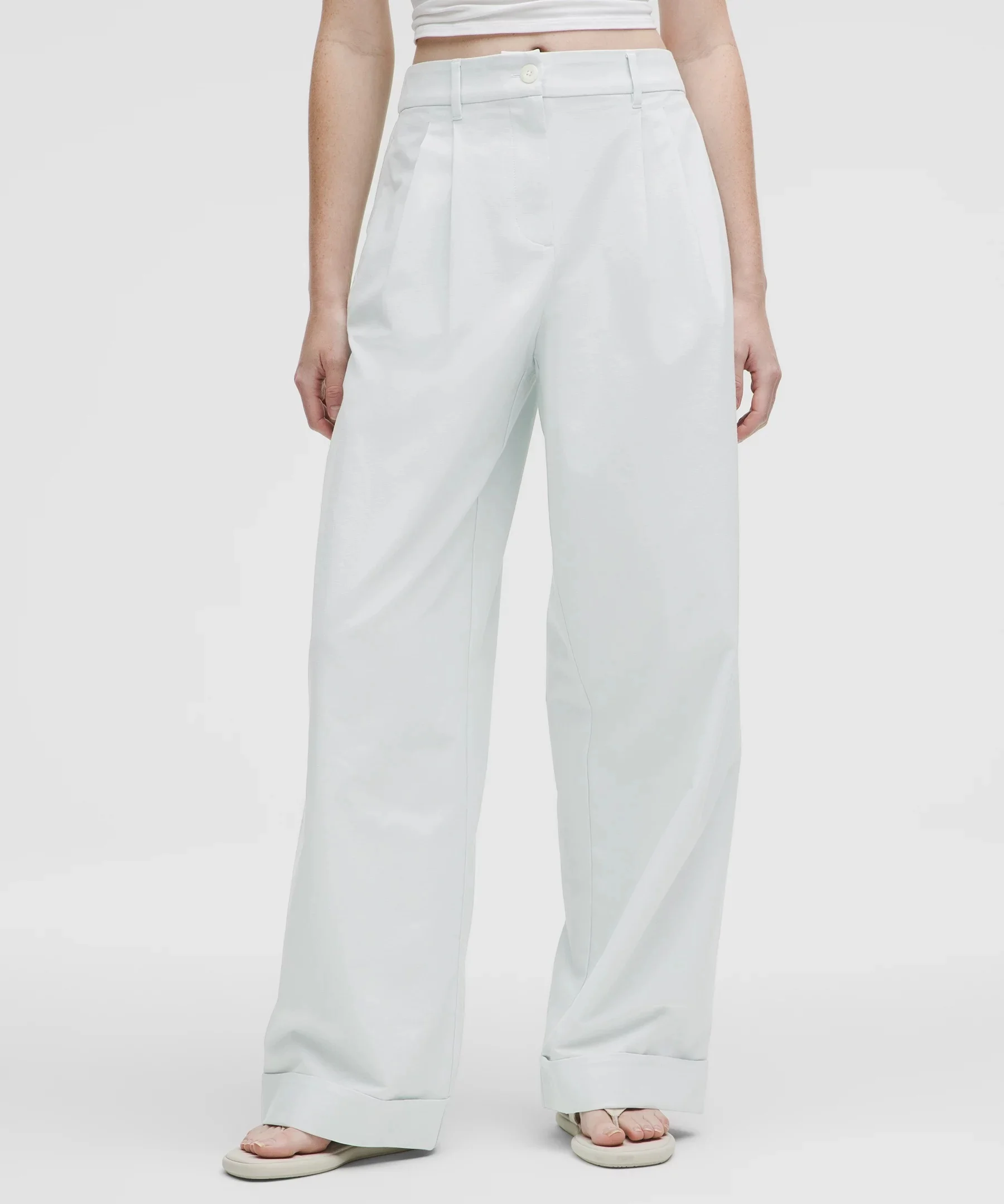 Designed for Casual LuluLinen™ Fabric - Cotton blend with a touch of linen fibres - Sweat-wicking - Quick-drying - 100% of the polyester in this product is recycled (excluding trims) High Rise, Full Length - Relaxed fit is roomy through glutes and thighs Product Features - Hand pockets - Back welt pocket is stitched closed—snip open to use - Fly-front waistband is elasticated at the back Material and care Materials Body: 67% Recycled Polyester23% Cotton10% Linen Care Machine Wash Cold - Do Not Bleach - Tumble Dry Low - Low Iron If Needed - Do Not Dry Clean - Wash With Like Colors