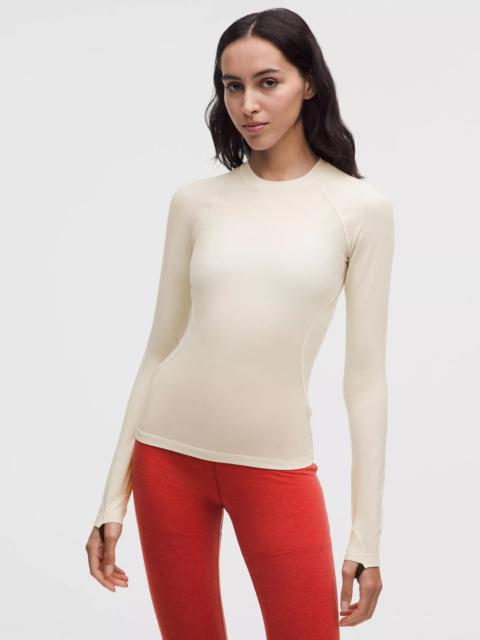 Designed for Hiking Naturally Thermoregulating, Merino Wool-Blend Fabric - Naturally thermoregulating - Soft against skin - Provides mid-warmth - Be gentle and treat with care. Please refer to the material and care section below for full fibre content information and wash instructions - Fabric is derived from wood-based materials from well-managed forests Tight Fit, Hip Length - Contours your body - Sits below the waistband for moderate, everyday coverage Product Features - Thumbholes help keep sleeves down and hands warm Material and care Materials Body: 59% Tencel Lyocell31% Merino Wool10% Elastane Care Machine Wash Cold - Do Not Bleach - Tumble Dry Low - Do Not Iron - Do Not Dry Clean - Wash With Like Colors