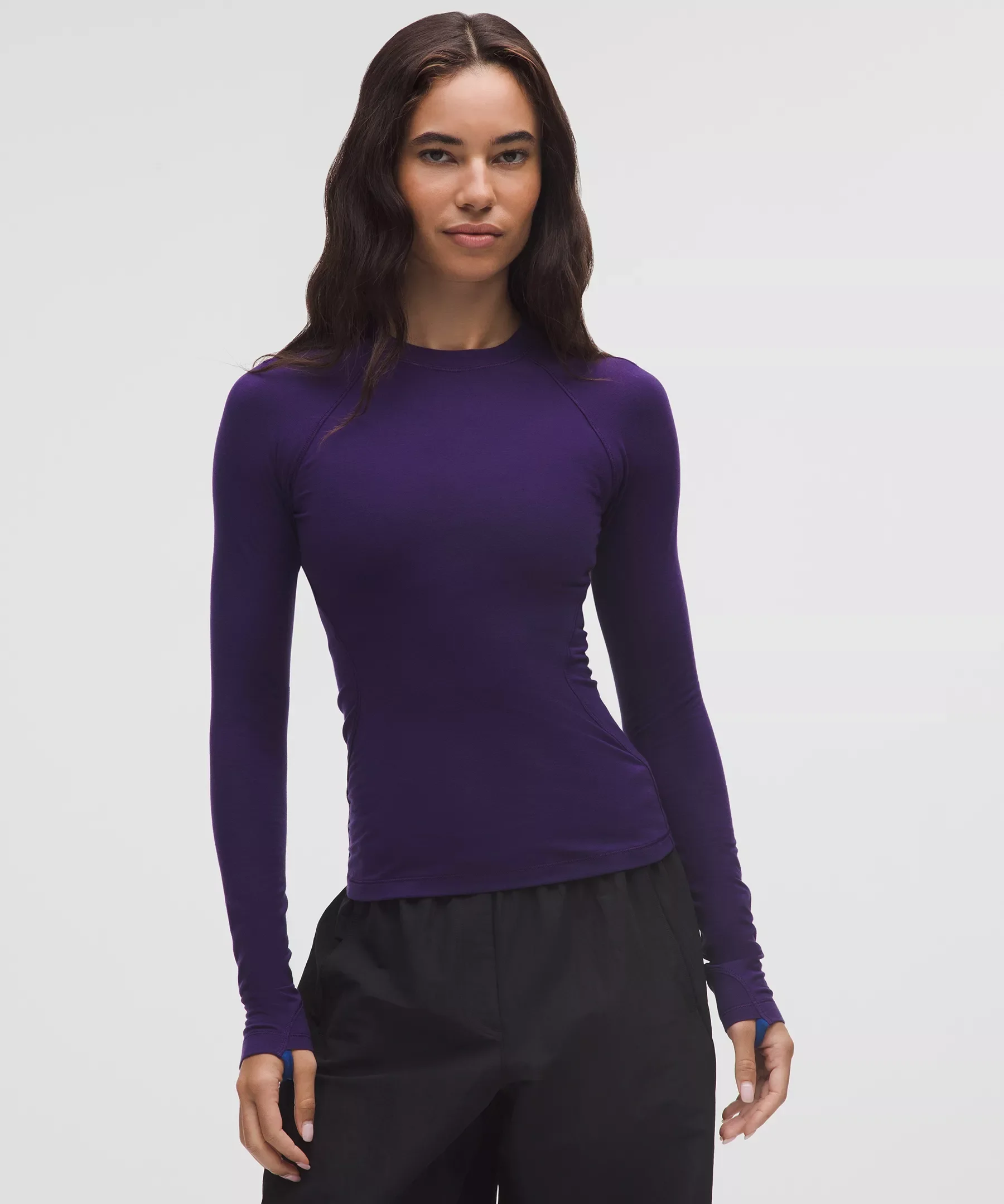 Designed for Hiking Naturally Thermoregulating, Merino Wool-Blend Fabric - Naturally thermoregulating - Soft against skin - Provides mid-warmth - Be gentle and treat with care. Please refer to the material and care section below for full fibre content information and wash instructions - Fabric is derived from wood-based materials from well-managed forests Tight Fit, Hip Length - Contours your body - Sits below the waistband for moderate, everyday coverage Product Features - Thumbholes help keep sleeves down and hands warm Material and care Materials Body: 59% Tencel Lyocell31% Merino Wool10% Elastane Care Machine Wash Cold Gentle - Do Not Bleach - Tumble Dry Low - Do Not Iron - Do Not Dry Clean - Wash Separately
